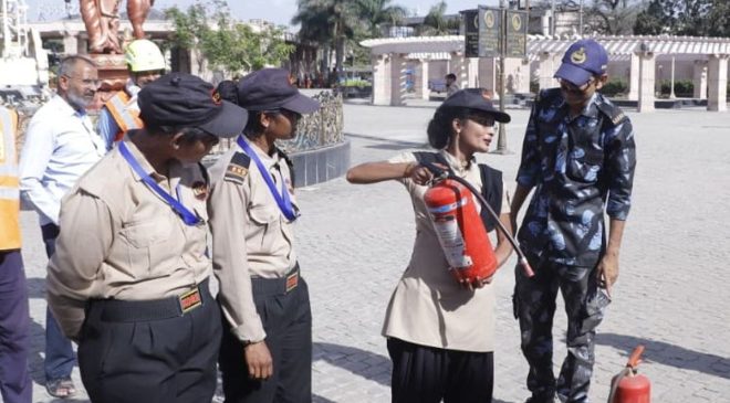 - महाकाल लोक में फायर सेफ्टी ट्रेनिंग: सुरक्षाकर्मियों को सिखाए आग से बचाव के तरीके, एक्सटिंग्विशर चलाने की दी ट्रेनिंग