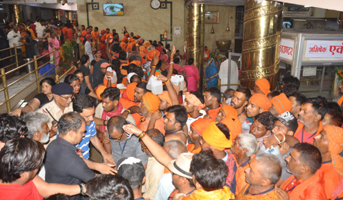 उपमहंत हरदेव गंगवार निवासी बरेली अपने साथ 160 लोगों को औंकारेश्वर से नर्मदा का जल कांवड़ में भरकर महाकालेश्वर मंदिर आये थे। सुबह 7 बजे कांवडिय़ां चांदीगेट तक कतारबद्ध खड़े हो गये।