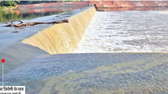 शिप्रा नदी पर त्रिवेणी के पास मोतीबाग पाल पर यहां से फिसलकर डूबे दोनों छात्र।
