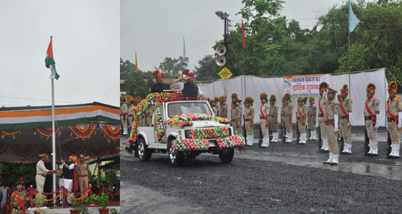 उज्जैन। दो दिनों से जारी बारिश का क्रम सुबह भी जारी रहा, लेकिन इसका कोई खास असर स्वतंत्रता दिवस कार्यक्रमों पर नहीं पड़ा। मुख्य परेड स्थल दशहरा मैदान पर सशस्त्र व पुलिस बल के साथ स्कूल-कॉलेज के बच्चों ने कार्यक्रम में उत्साह और उमंग के साथ भाग लेकर सांस्कृतिक कार्यक्रमों की प्रस्तुती भी दी। यहां प्रदेश के उच्च शिक्षा मंत्री जीतू पटवारी ने ध्वजा रोहण किया और मुख्यमंत्री कमलनाथ के प्रदेशवासियों को संबोधित भाषण का वाचन भी किया।दशहरा मैदान पर आयोजित स्वतंत्रता दिवस कार्यक्रम के लिये नगर निगम द्वारा अतिथियों के लिये वाटरप्रूफ शेड बनाया गया था, जबकि मंच के सामने की ओर स्कूल कॉलेज के लिये बनाया गया वाटरप्रूफ शेड छोटा पड़ गया और एनसीसी, स्काउट के बच्चे बारिश के बीच भीगते रहे।