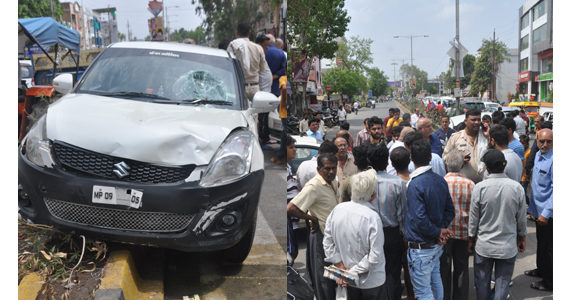 सुभाषनगर चौराहे पर स्कूटी सवार दंपत्ति को कार ने मारी टक्कर