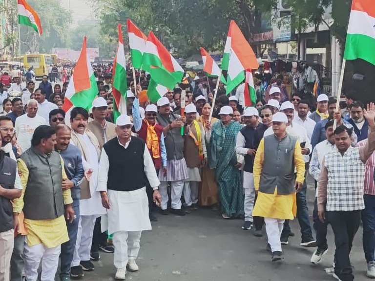लौह पुरुष सरदार वल्लभभाई पटेल की 150वीं जयंती के अवसर पर उज्जैन में शुक्रवार को ‘एक भारत श्रेष्ठ भारत’ के संकल्प के साथ भव्य पैदल मार्च का आयोजन किया गया। यह मार्च शहीद पार्क से प्रारंभ होकर करीब डेढ़ किलोमीटर की दूरी तय करता हुआ शहर के प्रमुख मार्गों से गुज़रा। कार्यक्रम में सामाजिक संगठनों के प्रतिनिधि, स्कूली छात्र-छात्राएं, एनसीसी कैडेट्स और बड़ी संख्या में भाजपा कार्यकर्ता शामिल हुए, जिससे पूरे क्षेत्र में देशभक्ति का माहौल देखने को मिला।